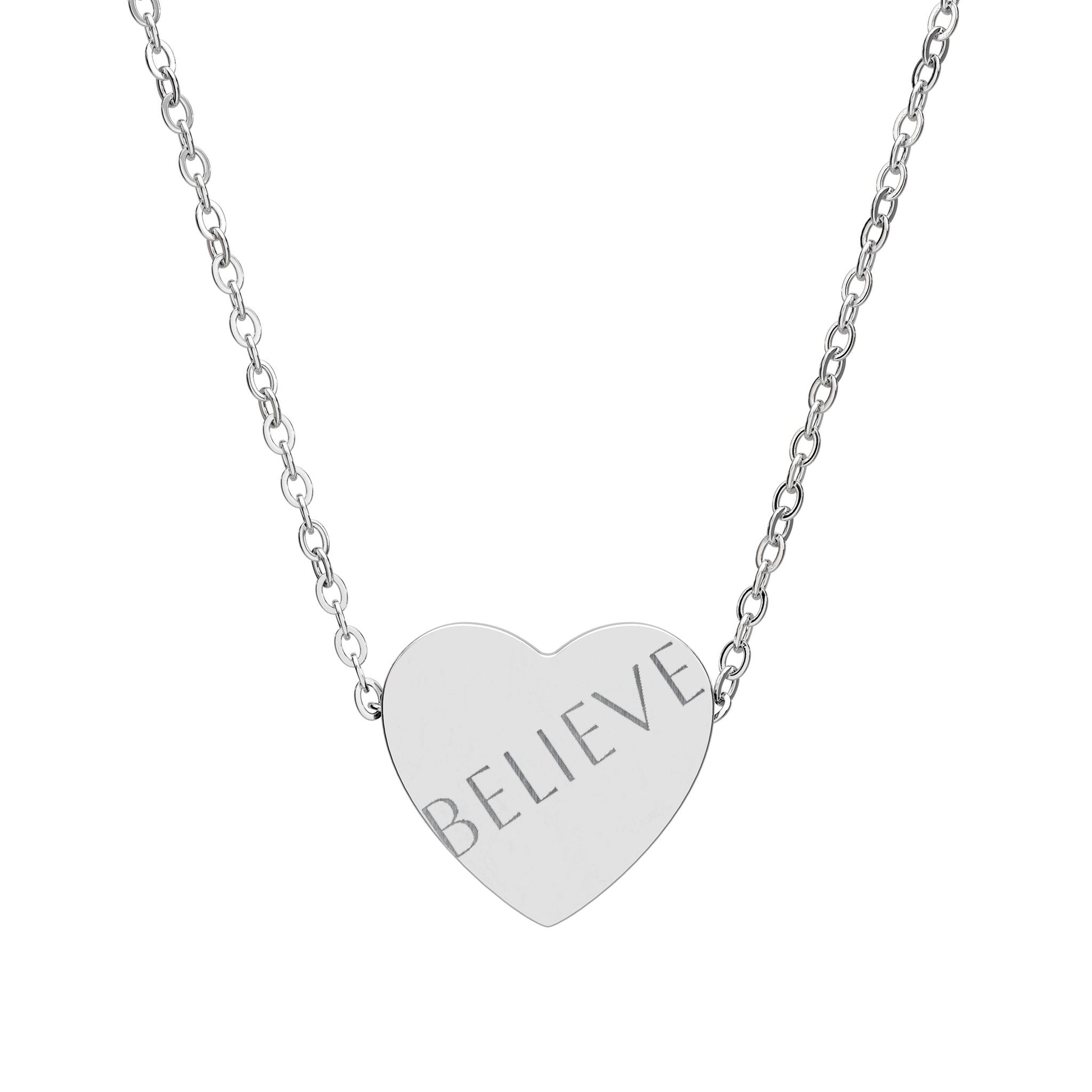 Believe Engraved Heart Necklace — Personalized Sterling Silver Pendant Gift